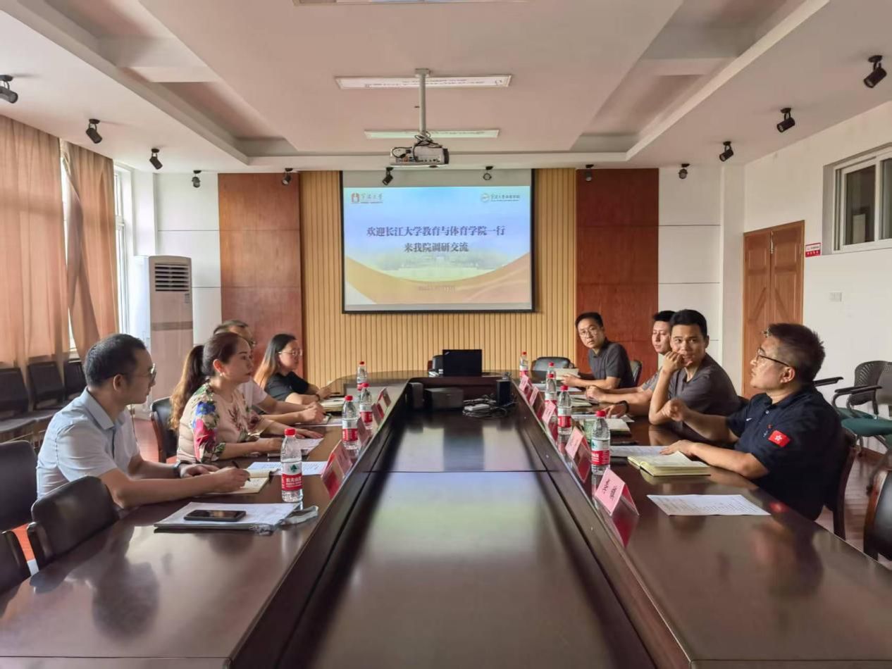副院长任峰,副院长赵亮,党委委员刘维,体育系副主任郭强等出席会议。副院长任峰代表学院对长江大学同仁的到访表示热烈欢迎。双方围绕体育学科建设与人才培养等议题进行了深入探讨。